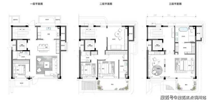 项目叠拼235-286㎡面积段户型,上中下叠均独立入户,全套房设计。设计亮点:宅前个性展示区、归家仪式型门头、6.2米超宽起居厅、中叠增设露台形成室内外联动的社交空间。