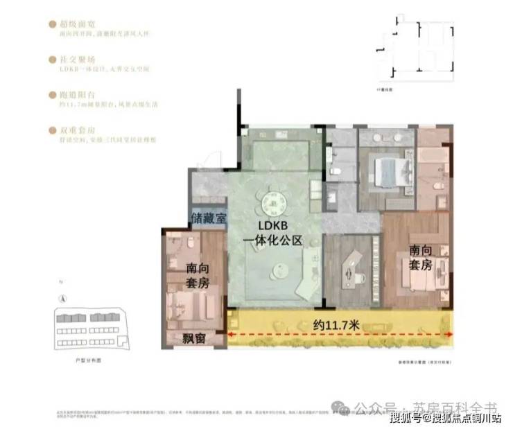 超宽三连大阳台,四开间布局,大横厅,双套房设计,电梯双开门