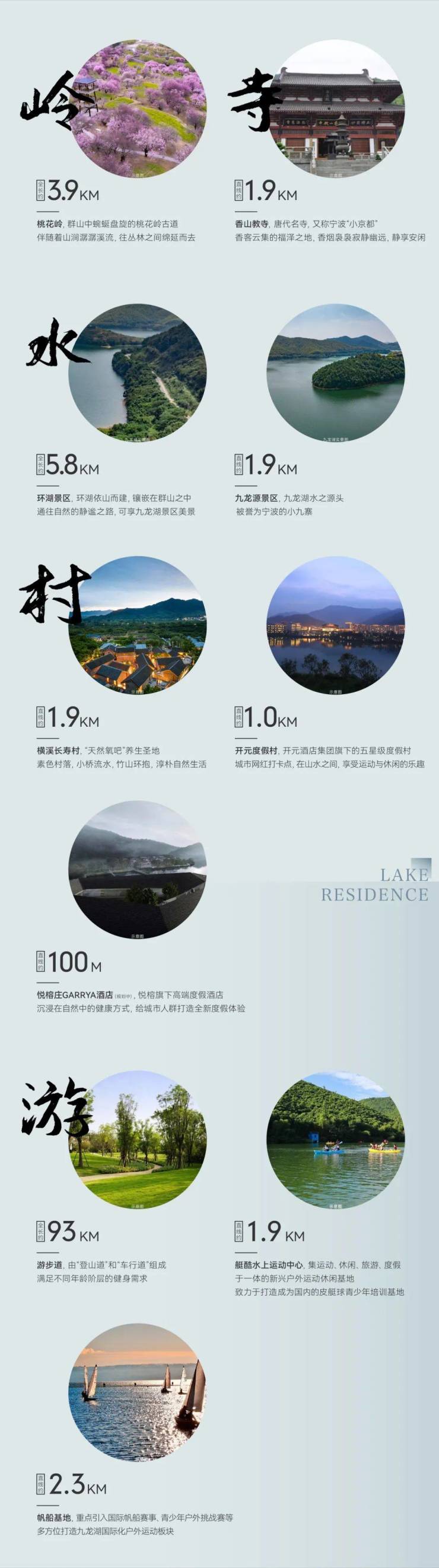 九龙湖镇群山环抱,湖塘遍布,旅游资源极为充沛。利时·玖珑湾在山溪清涧与九龙湖波光交织中,环湖依山而建,镶嵌在群山之中,通往自然的静谧之路,优质纯净的空气、水土及环境形成湖畔天然秘境,随风传来高山流水的自然乐章。