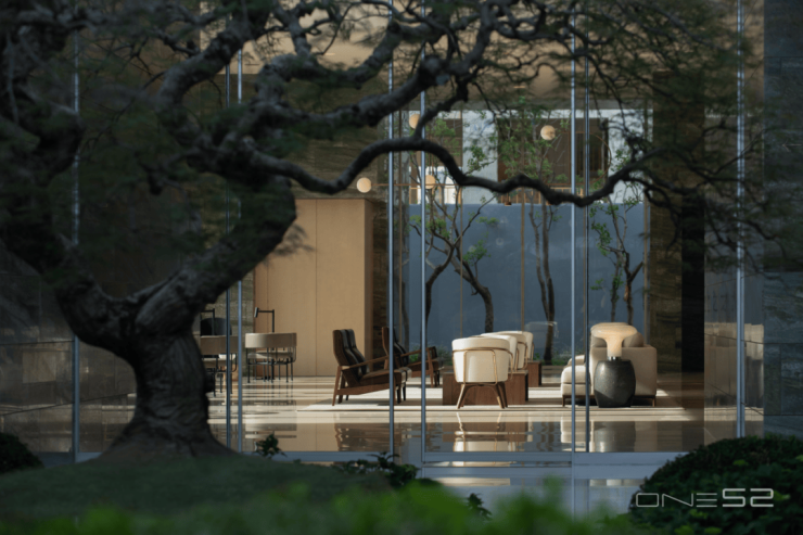 ONE52占地92亩,限高24米,容积率1.69,规划有23栋6-7层的洋房,只有376户。从案名拆解看,ONE52是向世界豪宅ONE57看齐,另一方面"ONE"寓意独一无二,"52"则象征着恒久传承——这个数字暗合普利兹克奖第52届得主、建筑泰斗戴卫·奇普菲尔德的永恒设计哲学。