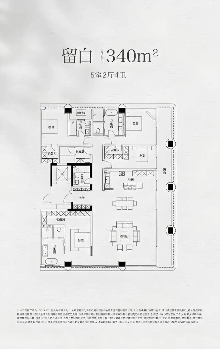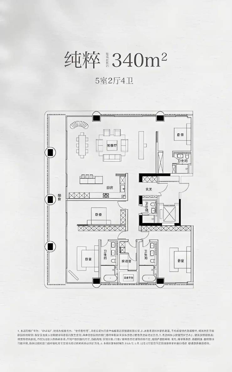 建面约340㎡户型,5室2厅4卫