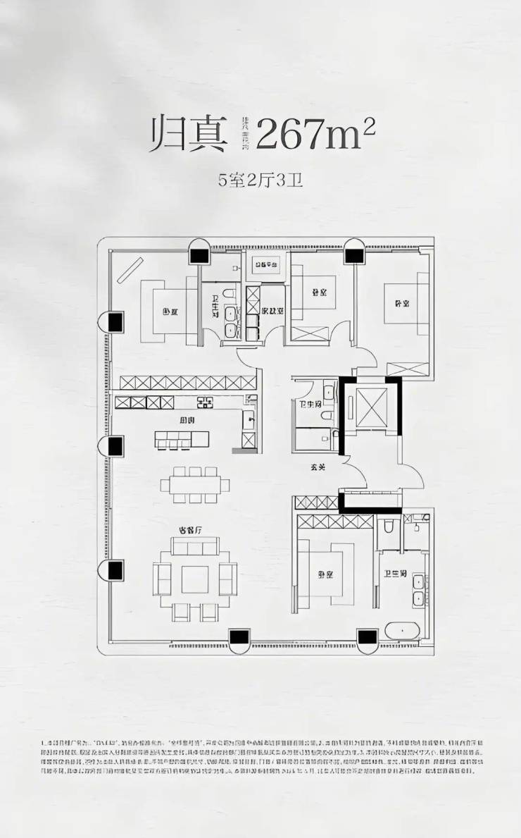 建面约267㎡户型,5室2厅3卫