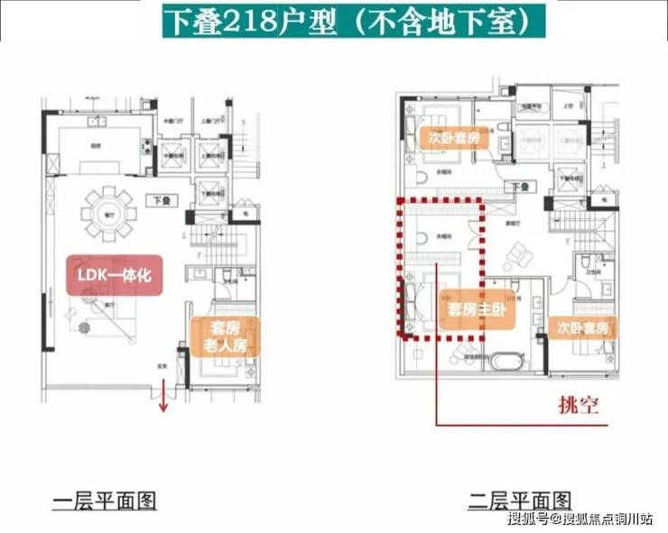 目前仅出来一个下叠户型,约218㎡4房4卫(不含地下室)。