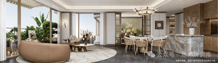 实际上,它的功能和空间,对标的是普通三代宅建面约130-240㎡产品,但在设计元素上,豪宅味儿更浓厚。