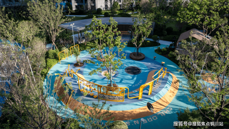 社区铺设环形运动跑道,甄选环保型材料,兼具安全质感与生态友好特性。高饱和度色彩如流线般环绕园区,勾勒出活力盎然的 “悦动健身环”,践行健康社区理念。