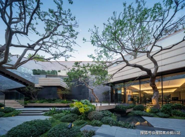 另外还搭配了阶梯式绿化、镜面水池错层平台,空间感很强