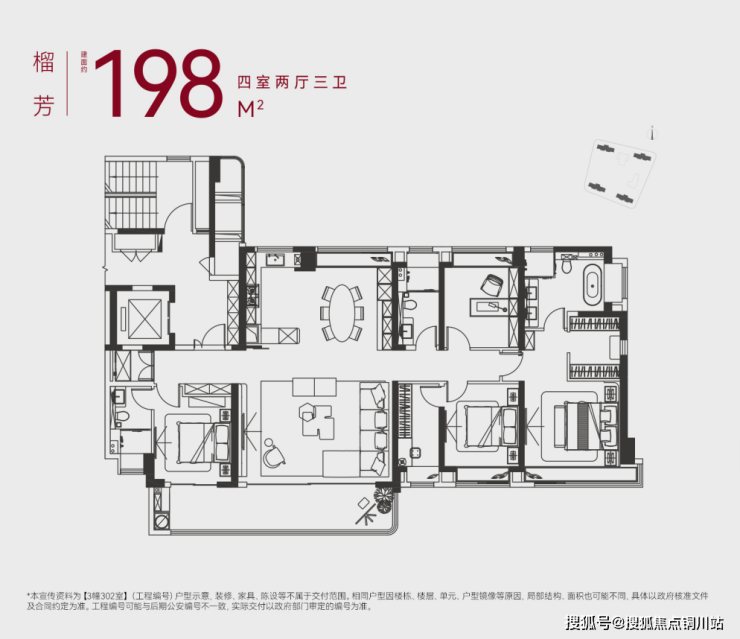 源尚丹若府整个小区标准层仅198㎡一种户型,营造河西纯粹大平层社区,圈层纯粹。整体户型四室两厅三卫设计,约6.3M挑高大堂,独立玄关规制;约20M南向面宽,约3.15M层高;约6.2M开间大横厅,约9.4m X 1.8m跑道阳台,三层落地玻璃,全屋采用YKK系统门窗;中西双厨空间设计,隐藏吊轨式推拉门;约36㎡套房主卧,步入式全明衣帽间,双窗双台盆设计主卫。x+1空间设计,可打造儿童房、电竞房等,业主可根据需求自行定义。