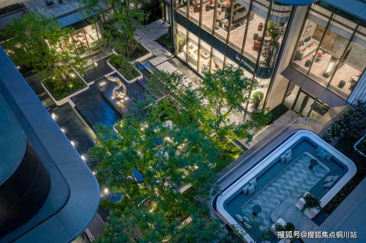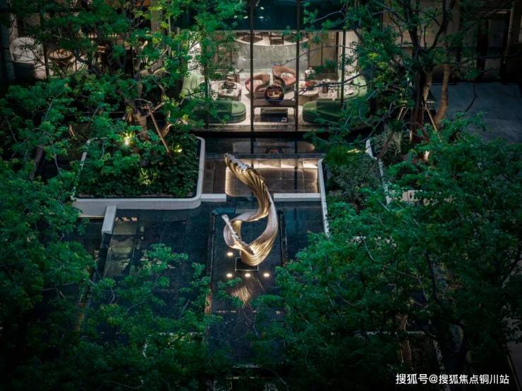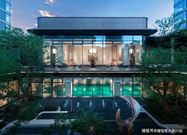 项目示范区引入艺术门廊、艺术大堂、下沉庭院、风雨连廊、单元大堂与琉璃光厅中心会所等,打造了一条正对长江的艺术景观轴线和丰富的酒店式体验归家流线。琉璃光厅中心会所为双层立体会所:含约2500㎡地上地下复合空间,涵盖恒温泳池、私宴厅、SPA秘境、瑜伽、健身房等多功能复合会所空间,同时搭配下沉庭院空间,将室外景观进一步延展,串联自然与社交。