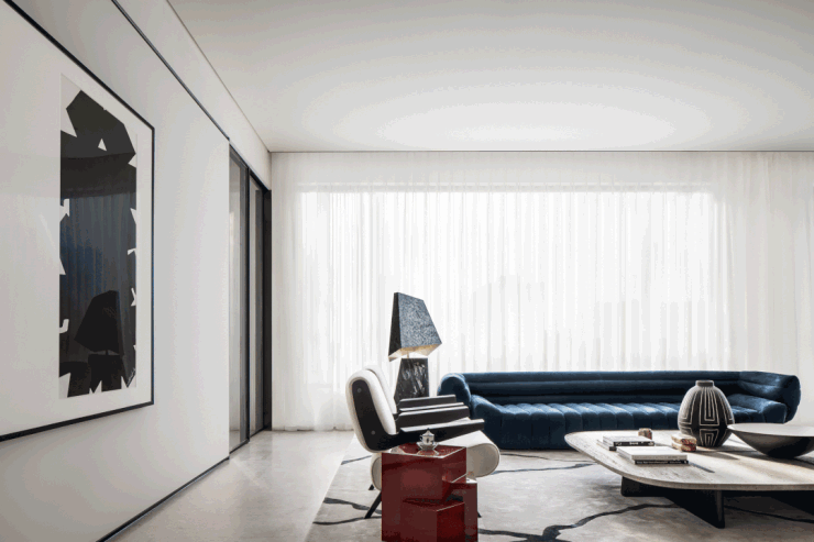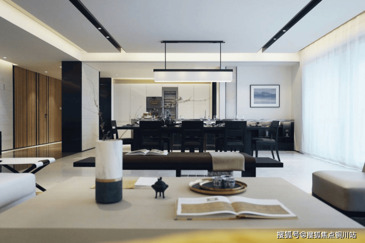 近50㎡的超级公区,足够“餐客西厨一体”的新型设计,空间开阔性极强。客厅宽约8.7米的巨幅玻璃窗下,阳光和壮阔江景肆意倾泻而入,交织成为一副最美的动态画面。