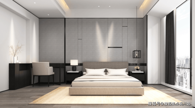 主卧配以大面积落地窗,不仅采光更好,还可与外界相连,傍晚时分,俯瞰辉煌的都市奇观。