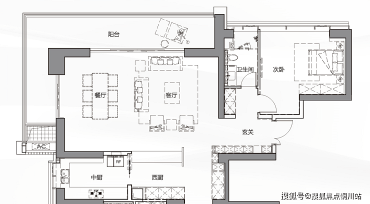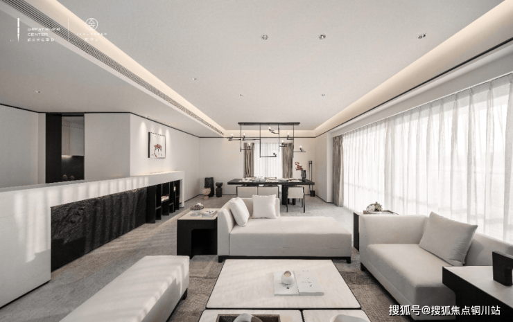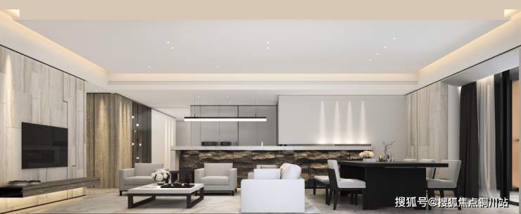 细心的读者恐怕已经发现,公区采用的LDK一字型设计,客厅-餐厅-西厨-中厨,共处一个开放空间,可视性、互动性更强。