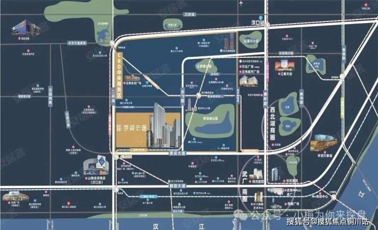 武汉城建梦湖云著位于建设大道与汉西路交汇处,楼市板块属于武汉CBD板块,行政划分属于硚口区,二环以内。该项目是武汉城建集团于2021年10月竞得的P(2021)142号地块。成交总价172900万元,成交楼面价约14777.8元/平。项目情况武汉城建梦湖云著占地面积约3.5万方,总建面约15.9万方,容积率3.24,共622户,机动车停车位1043个,住宅车位比约1:1.25。包含6栋住宅、1所幼儿园、1所办公楼、1栋独栋商业、1栋公租房。
