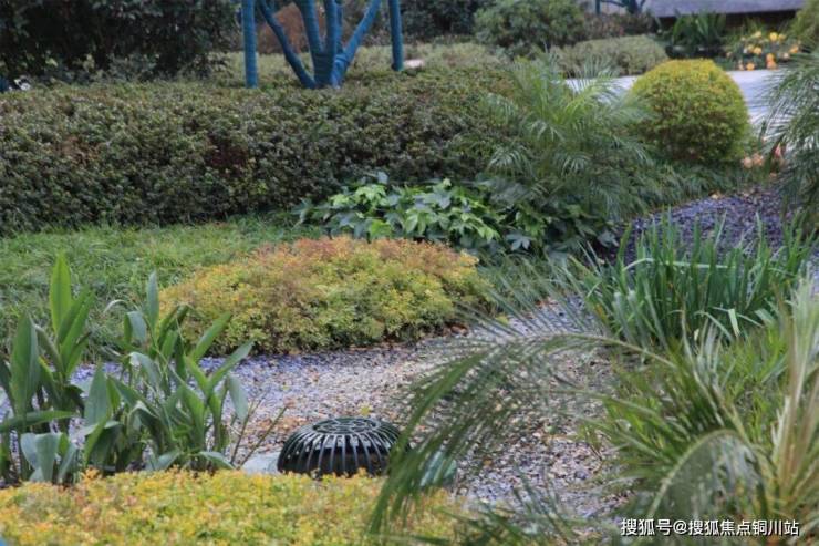 生态与生活相融,项目巧借地势微差,在低洼区域配植菖蒲、鸢尾、千屈菜等耐湿且具备水质净化能力的本土植物;同步铺设透水铺装、打造生态植草沟,构建起高效的雨水渗蓄净化系统。
