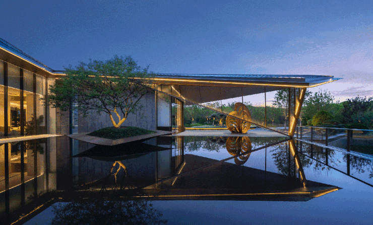 围绕着下沉式庭院,集结了影音室、阅览室、私宴厅、茶艺室、棋牌室、羽毛球馆、VR高尔夫、台球室、瑜伽房、健身房、儿童游乐区等各种功能间。未来你在室内,通过树的摇曳和水的波澜,就能感受到阳光和微风。