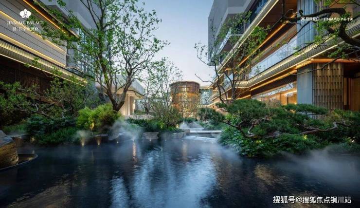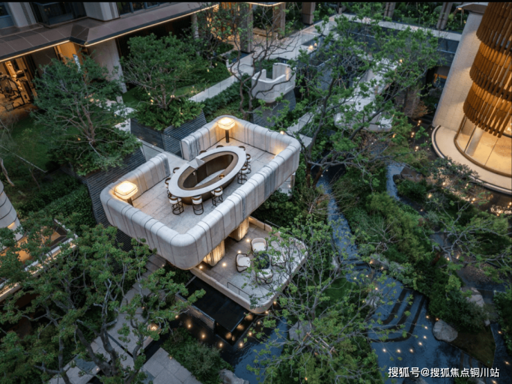 我们知道,传统的下沉庭院,多以建筑围合成方正格局,点缀古松、乌桕、静水与假山,再配以休憩卡座,便基本构成园林意境。而江宁金茂府,通过三重设计创新,实现从“庭院”到“立体森林园境”的跨越。