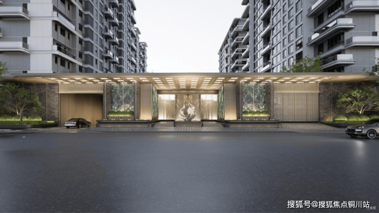 仪式系统:酒店式奢阔大门,定制紫薇雕塑在水中盛放,浅色石材与高质金属交相辉映,奠定名门归家之仪;风雨连廊串联归家动线,将日常淬炼成一段充满仪式感的心灵旅程;地库入口感应灯带,一路星光璀璨,拓领归家的奢华排场。