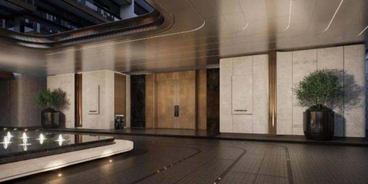 双大堂体系进一步强化了居住的尊崇感与私密性。礼宾大堂挑高开阔,业主专属大堂则采用人脸识别门禁系统,刷卡入户的私密动线设计,让每一次归家都充满安全感。