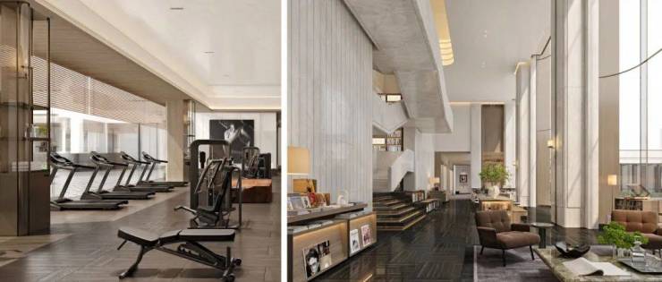 1450㎡下沉会所更是社区生活的“能量中枢”。健身盒子内,全景落地窗将户外绿意引入室内;书吧盒子采用静谧的暖色调设计,落地窗边的阅读位成为独处沉思的理想之地。