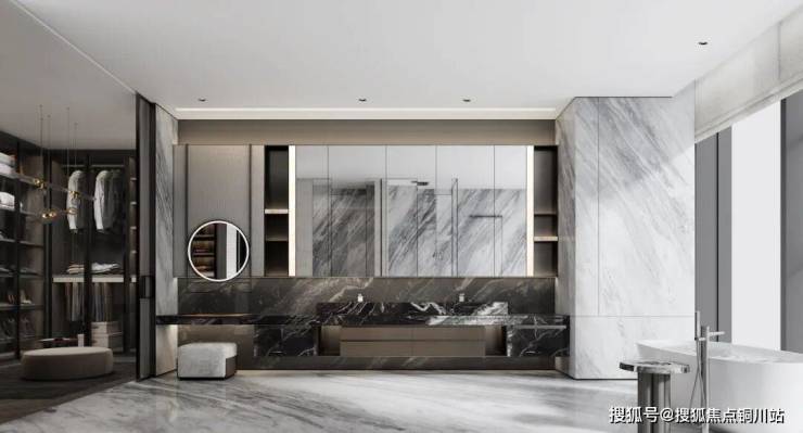 在高定装修方面,该产品采用全球豪宅精装品牌、5维健康系统与5大精研收纳空间,以及全屋智能交互系统,室内大面奢石铺装,与超五星酒店同等的奢华与艺术。同时,它的观江面、酒店式套房、无界方厅的尺度,均超越其他大平层。