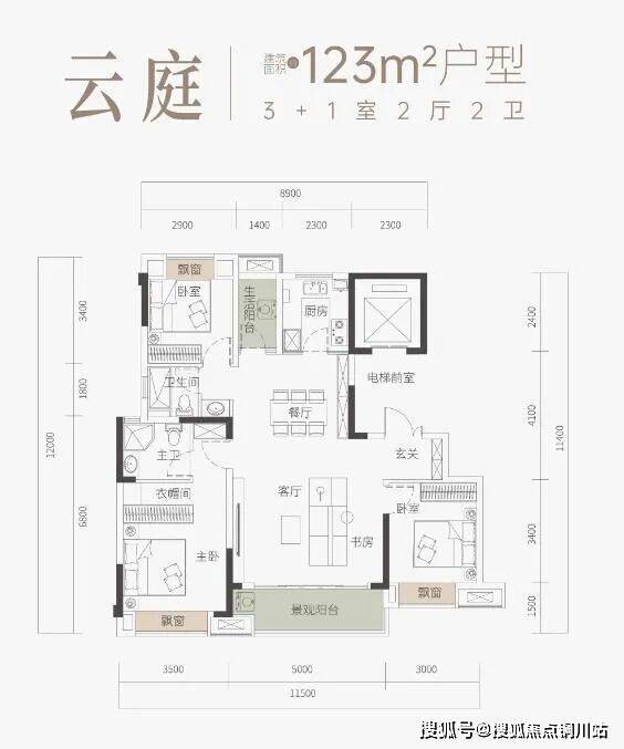 123㎡的3+1房是小高层稀缺产品。