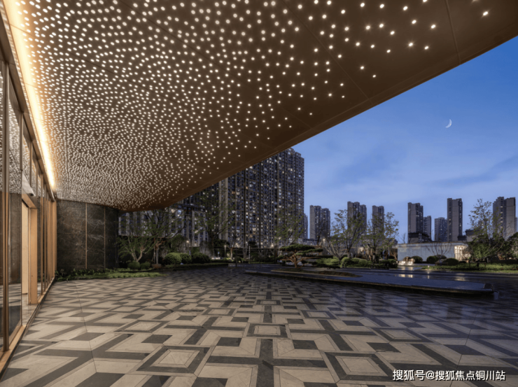 主大门整体跨度约33米,气势恢宏,门庭还是"劳斯莱斯同款"钻石星空顶,让业主甚至能手摘星辰,营造出梦幻般的视觉体验。