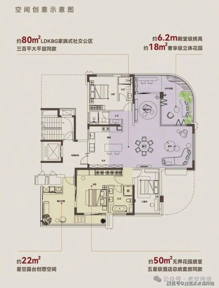 约3.1米朗阔层高,约50㎡总统套房级主卧,自带露台花园,突破现有改善标准。
