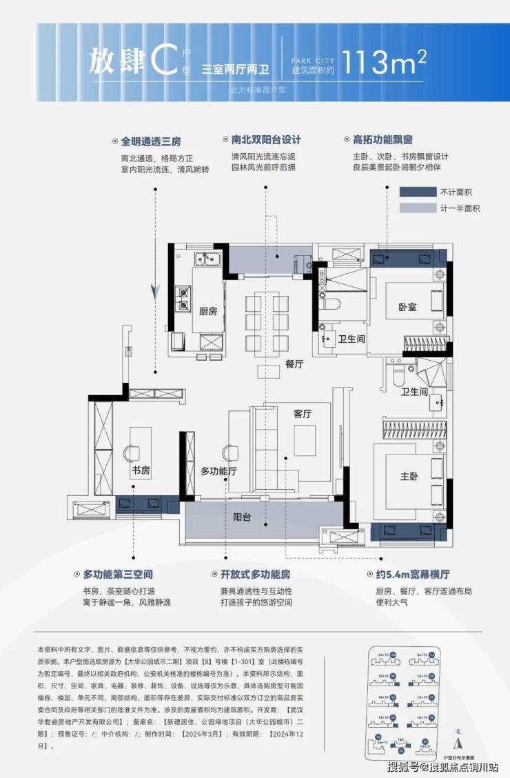 约5.4米大横厅,南北双阳台、南向多功能厅,单单这几点在武汉中心城区来说,基本都要建面约120+平户型才能实现。然而,在大华公园城市二期,仅需建面约113平就能轻松实现改善大户型的居住体验。