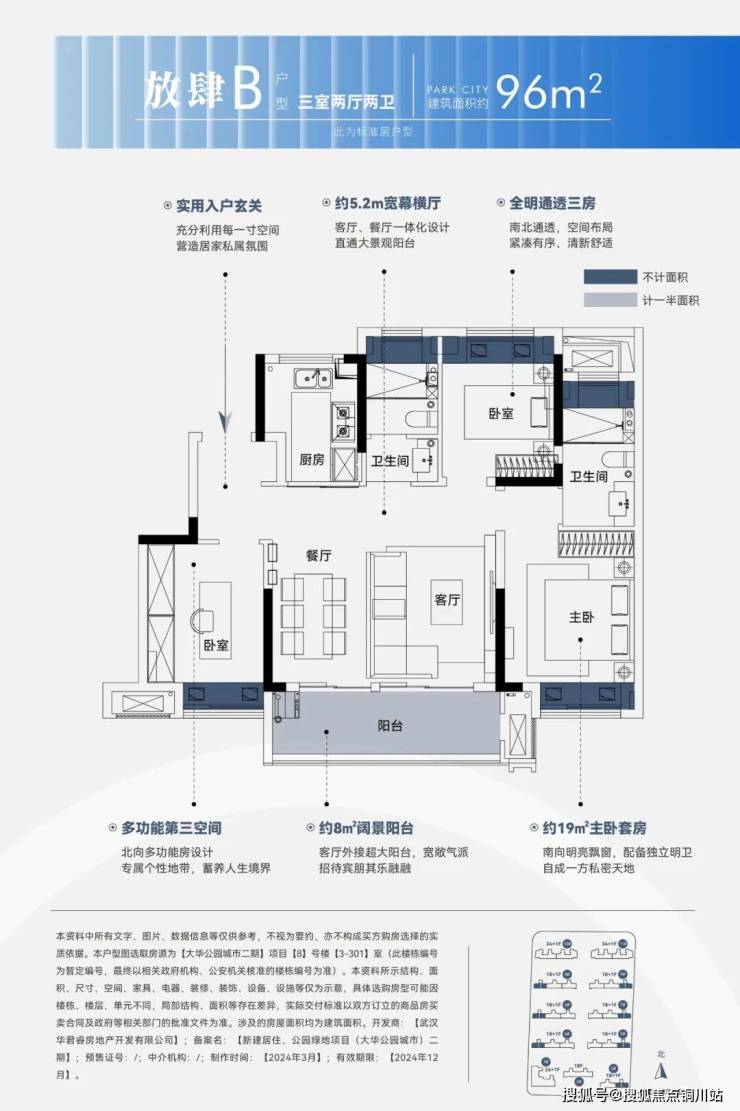 在大华公园城市二期这个建面约96平户型,不仅能做到四开间朝南、还带有南向大横厅,增加整体明亮度和舒适度的同时还能拉伸景观视角,大气舒适。再加上双卫设计,功能性翻倍。
