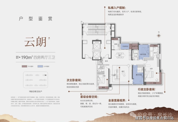 4房2厅3卫,私梯入户,南北通透,双套房设计,空间阔绰。