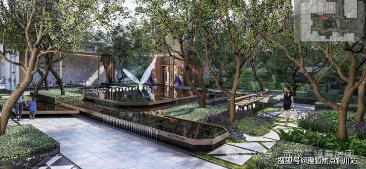 大区园林融合传统私家园林与现代酒店园林的造园手法,以现代艺术园林风格,营造“归家秘境”、“花园秘境”、“智慧秘境”、“时间秘境”、“美学秘境”五重秘境,创造都会间的奢适谧境。