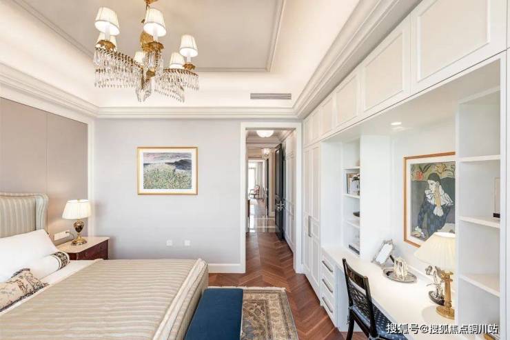 每个卧室自进门起,一整面墙均为储物柜,宽度达到约7.5米,高度约2.7米,通过精细化空间分隔,满足不同家庭成员的收纳需求。