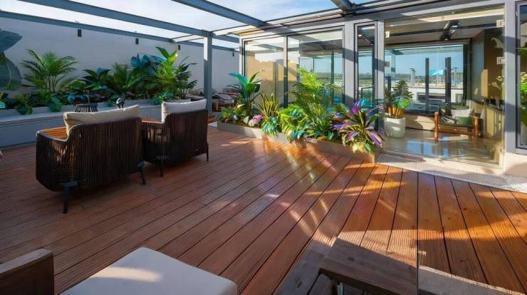 联投武汉城建花山印象以分层设计与灵活空间,适配家庭每个阶段的需求:下叠约60㎡院落,是自然私属会客厅,母亲在庭院里打理花草,父亲煮茶,孩子追着蝴蝶跑过草坪,阳光穿过树叶洒下斑驳的影子,这便是改善家庭向往的“有院生活”;上叠约70㎡星空露台是浪漫与实用的结合,夏夜陪孩子观星,周末不用提前预约,随时都能举办屋顶派对。
