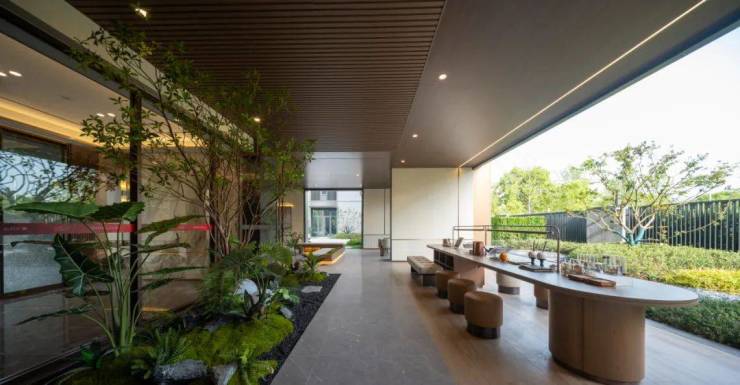 江澜鸣翠项目是建筑与景观的和谐共鸣,更是对临海千年风雅的现代续写。设计巧妙提炼古城肌理与文人雅趣,将酌酒寻幽、品茗莳花、听雨赋诗、城墙记忆等文化符号,转译为景观节点与空间意境。精选环保产业材料,呼应“翠形萃意”的文化内核。在这里,山海的壮阔、古城的深邃、现代的精致,在灵江之畔达成完美共生。