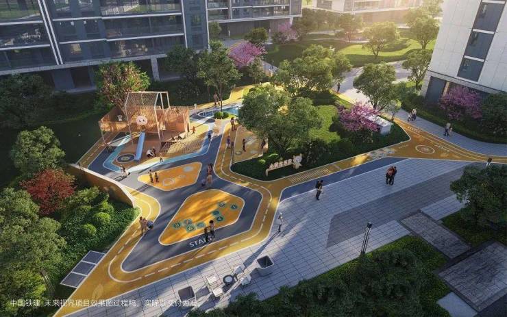 在宁波·未来视界的造景理念里,景观不应只是被观看、被欣赏,更应注重其交互性。项目打造“HyperLife互动景观体系”,规划亲子、社交、颐养、健身四大场景,为全年龄段的居者提供沉浸式活动场域。并着力增强人与人的互动交流纽带,让友邻和睦、富有温度的社区生活回归。
