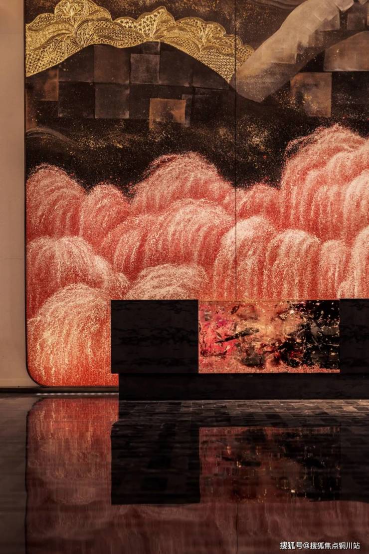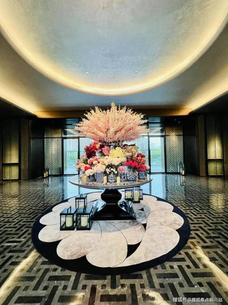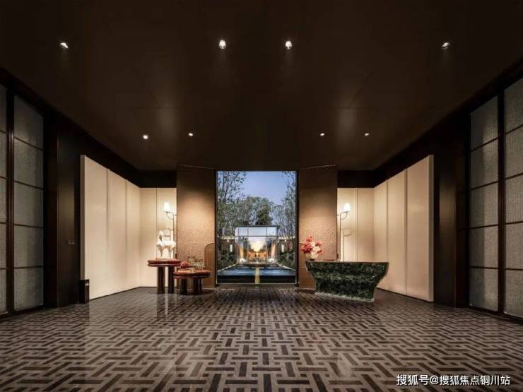 车马院以上海半岛酒店为灵感,设计上使用海鸥丽晶酒店同款接待门,彰显尊贵的大家门厅气质;打造社区归家玄关,下挂式星空顶、艺术雕塑、迎宾叠水范思哲黑背景墙交相辉映。
