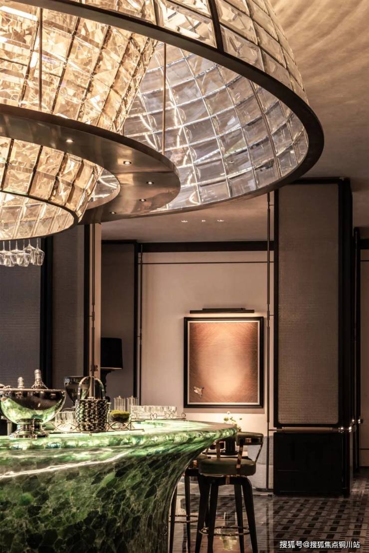 在行政酒廊中,一方绿水晶整体打磨而成的中央吧台,由手工打磨弧度,在普通人并不会拿着千分尺计算的情况下,紫金·翡丽甲第因为弧度不够完美砸掉了一方已经打磨好的绿水晶奢石吧台,而它的造价约300万。