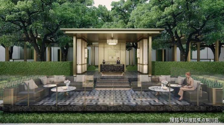 将东方园林造景的意境与意大利海派风格相融,中轴对称,融入苏州传统游廊,以两轴两园三进礼序,打造高奢酒店式艺术生活园境,形成热闹城市生活到静谧苏式园林的场景转换。