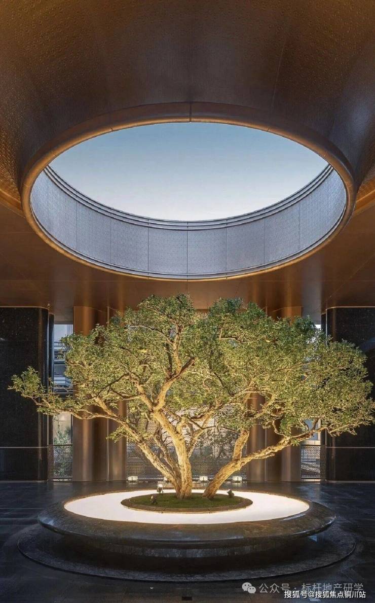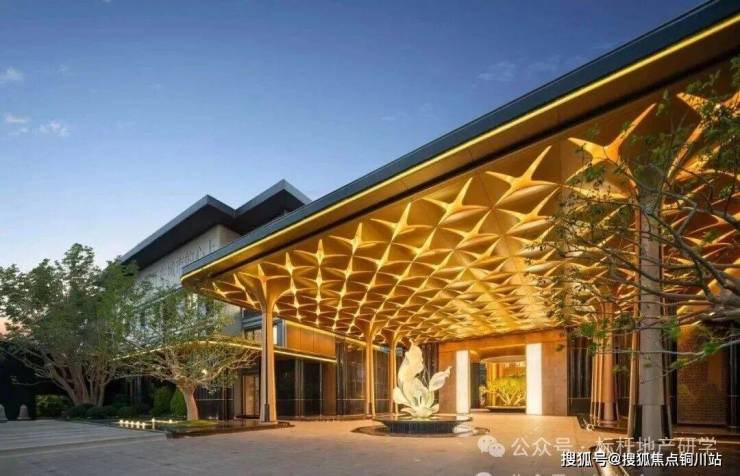 小区大门设计独特,细节之处彰显匠心。门厅之上,金碧辉煌的吊顶由超过200片精雕细琢的百合花瓣拼接而成,支撑其下的,是8根量身定制的百合花柱,中央更有一座巍峨壮观的百合雕塑,百合元素贯穿其中,引人入胜。在材料选择上,尽显奢华质感,精选名贵石材,如入门两侧水景之间铺设的福鼎黑花岗岩地面,景墙则选用了宝格丽绿石材搭配金属格栅,并以进口幻影蓝石材和白雪公主玉石巧妙点缀,尽显高贵气质。