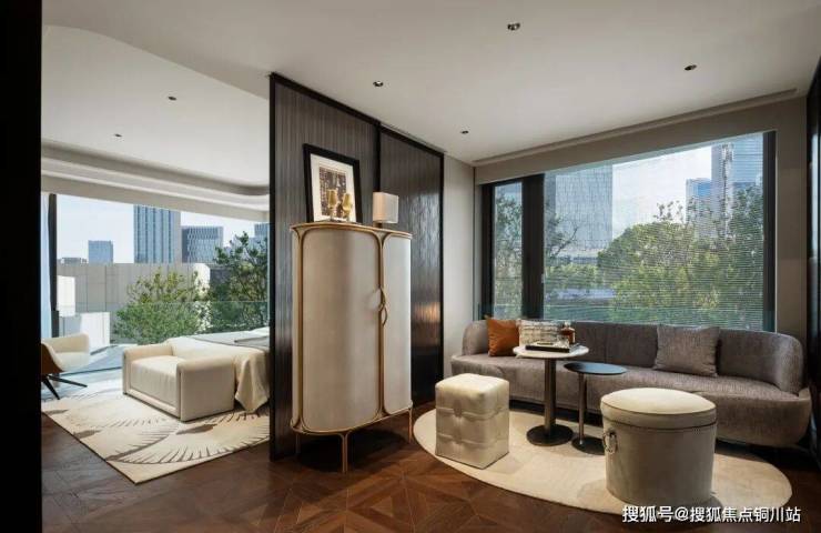 高技窗墙系统提升推拉窗实现最大通风与观景面;卧室落地扇+玻璃栏板设计达成真正“落地视野”;幕墙与室内地面“零高差”工艺,极致拓展空间感。