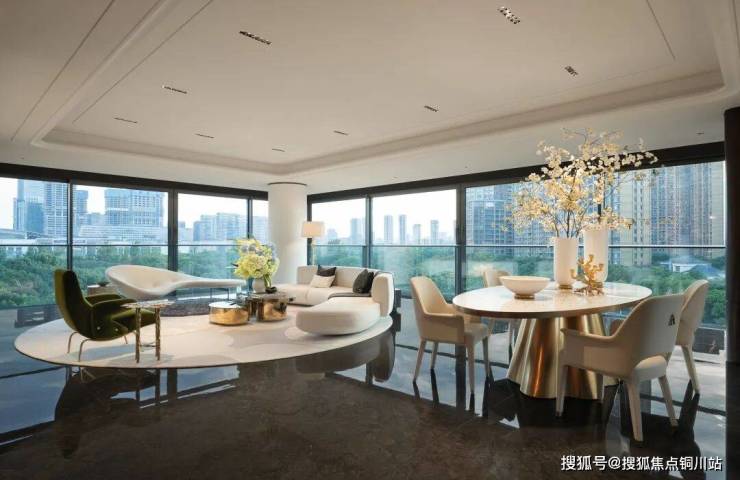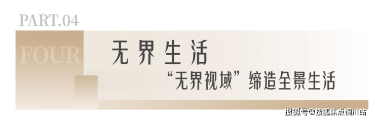 环幕视野跨越,突破单一南北朝向局限,全区户型均享有270°环幕视野,采用超大面积落地玻璃,取消传统反坎,实现真正“无界场景+落地观景”。