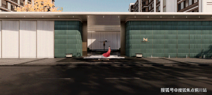 606片经过高压成型烧制而成的手工青色陶板组成社区大门