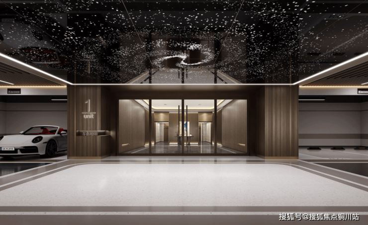 地下车库配备仿银河铝板星空顶,专属私密入户空间,点亮业主回家的好心情