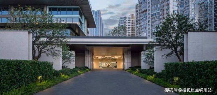 初见,低调奢华的门头采用大理石点缀金属,彰显雅致格调。镜水与景墙邀来光影,波光粼粼,色彩流转,为归家之旅拉开序幕。