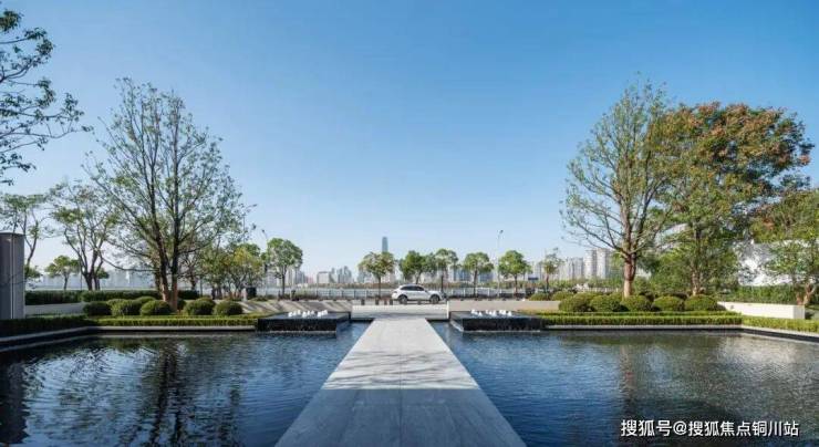 在水景施工方面,池底结构采用止水钢板预埋工艺,确保后期无渗漏隐患;防水层选用改性沥青防水卷材,并对阴角部位进行倒角处理,全面保障防水效果。阳光洒下时,水面泛起光芒,高贵典雅。