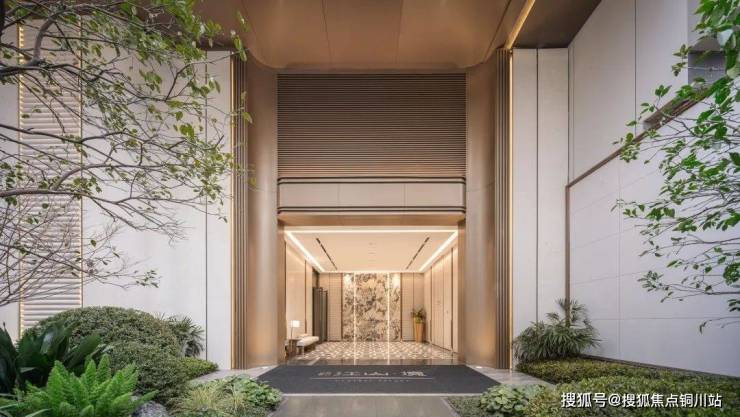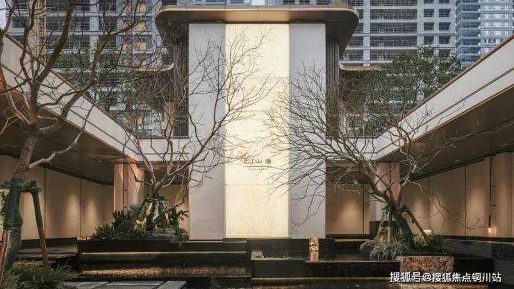 江山境大门采用 海派设计元素 ,实景园林以 曼谷四季酒店 为设计蓝本,构建"高定大门—玉屏沉光—空中艺廊—翠园雅境"四重归家礼序,极具尊贵感。