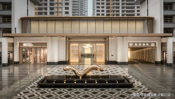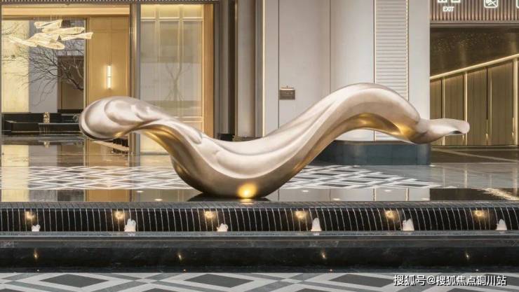 水景中央矗立着一尊采用流线手法打造的 金属雕塑 ,呈现出"鲲鹏起舞"那飘逸灵动的形态, 寓意业主大展宏图 。