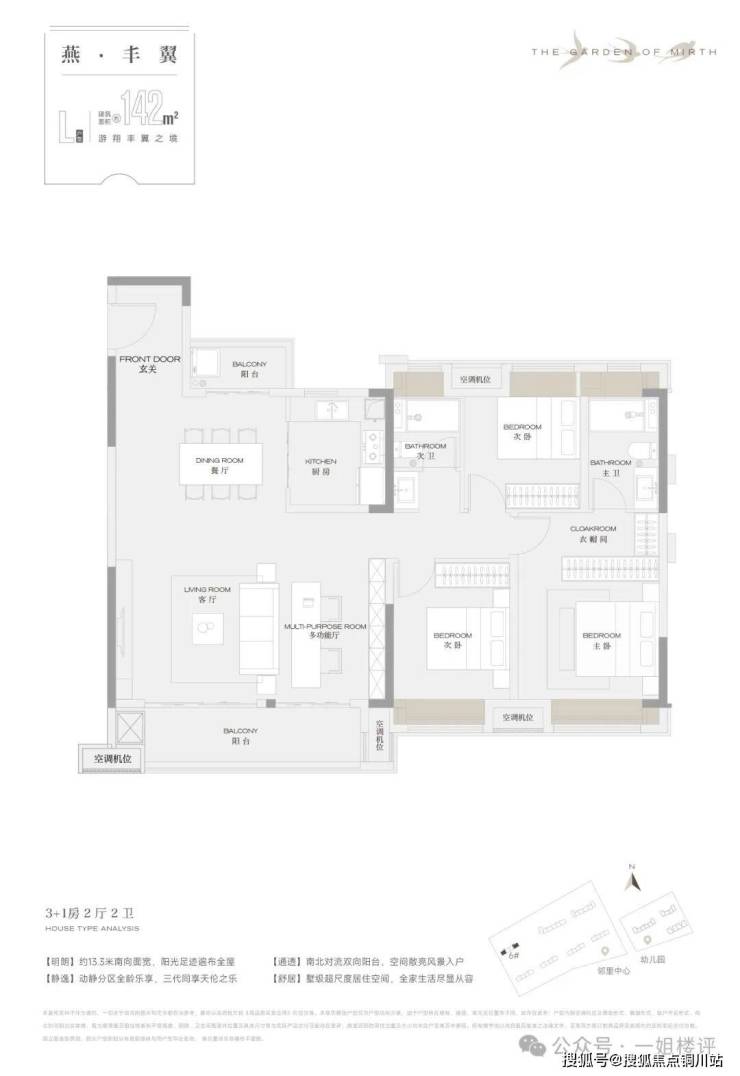 南北双阳台,还带有5个飘窗,超强优化拓展面积不输一些四代住宅;南向开间约13.3米,阔气大方厅,可以是一家人大型活动区,也能做成3+1房,自由灵动;主卧大套房设计,南北贯通,私密又舒适。