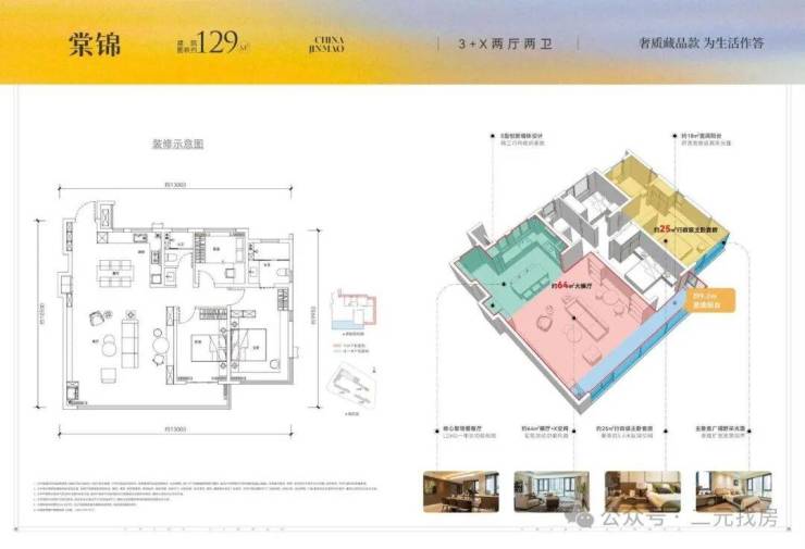 南北双观湖,3+X房两厅两卫,63㎡的LDKG设计,6.2米横厅,25㎡全景270°观湖主卧套房,9.2米跑步阳台连通次卧。