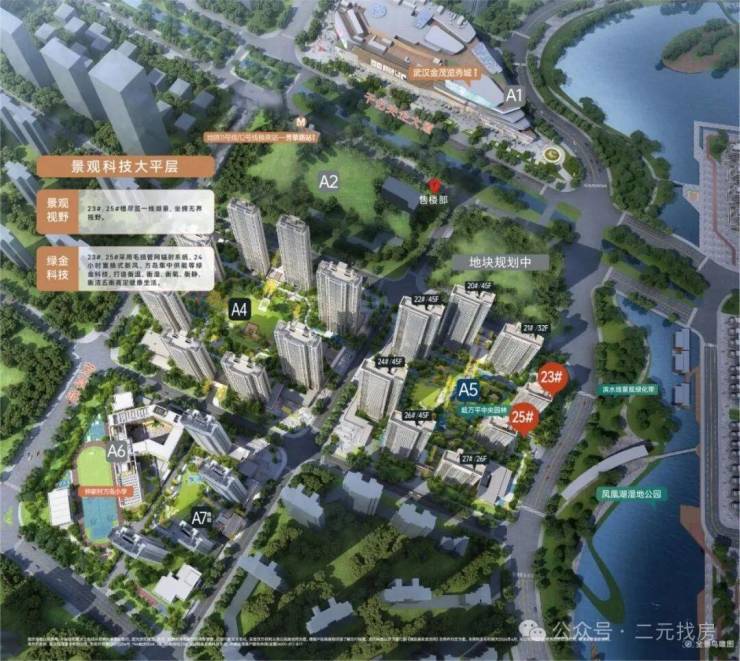方岛金茂A3地块住宅位于汉阳四新大道与凤凰湖环路交汇处,靠近方岛凤凰湖湿地公园。