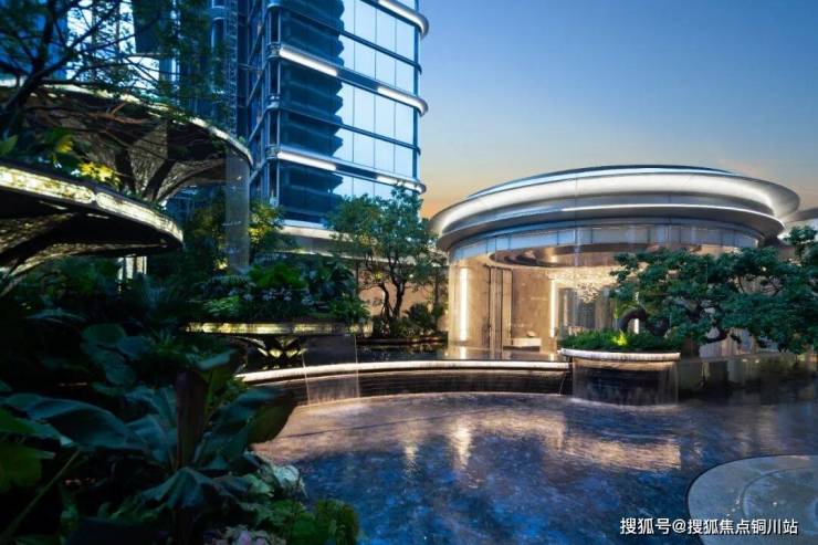 地库光厅全金属漆吊顶,彰显品质感,地面采用石材拼花设计,周边设置枯山水景观。